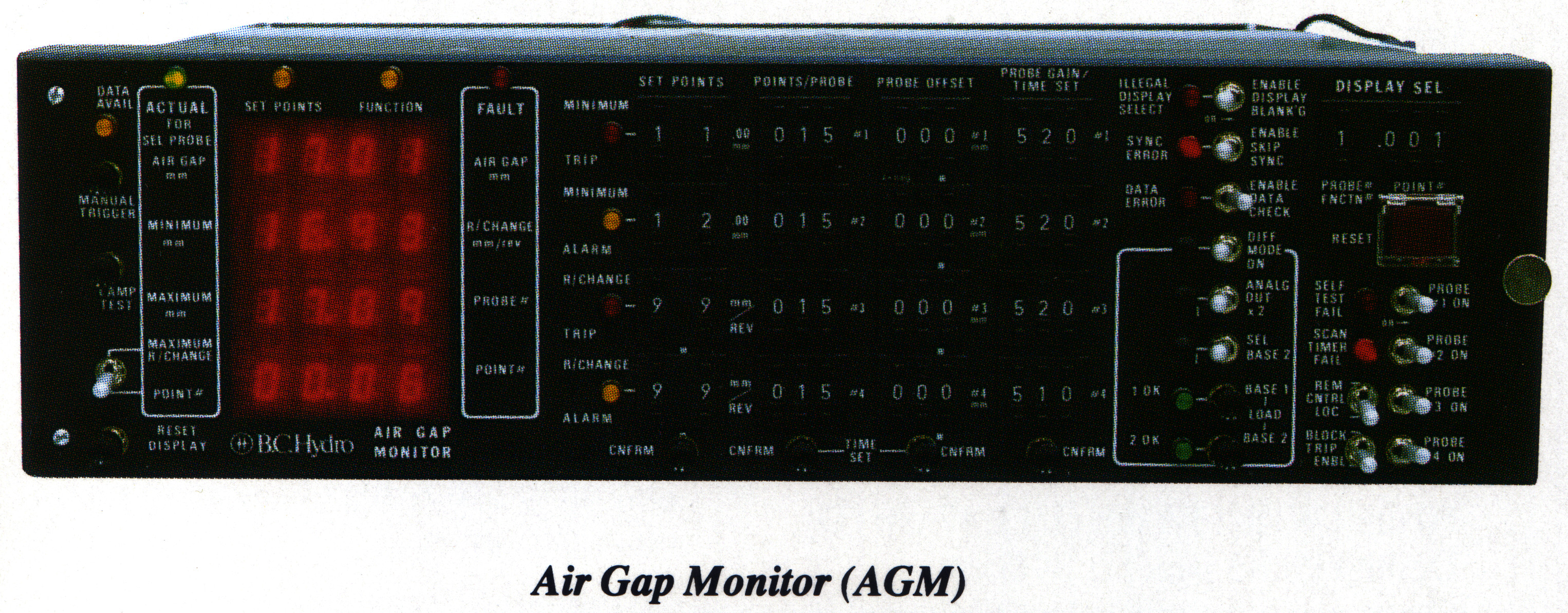 But the electronics in the AGM that converted the pulses received from the sensors into gap values was rather expensive and had limitations. For example, since the pairs of pulses from each of the two optical paths in a sensor were merged into one signal, at certain gaps they overlapped and were discarded as invalid. A few years later BC Hydro developed their 2nd generation AGM, the Diagnostic Air Gap Monitor (DAGM), that processed the two optical paths separately, so handled overlapped pulses correctly. However, it still had other limitations, and required one large board for each sensor.
