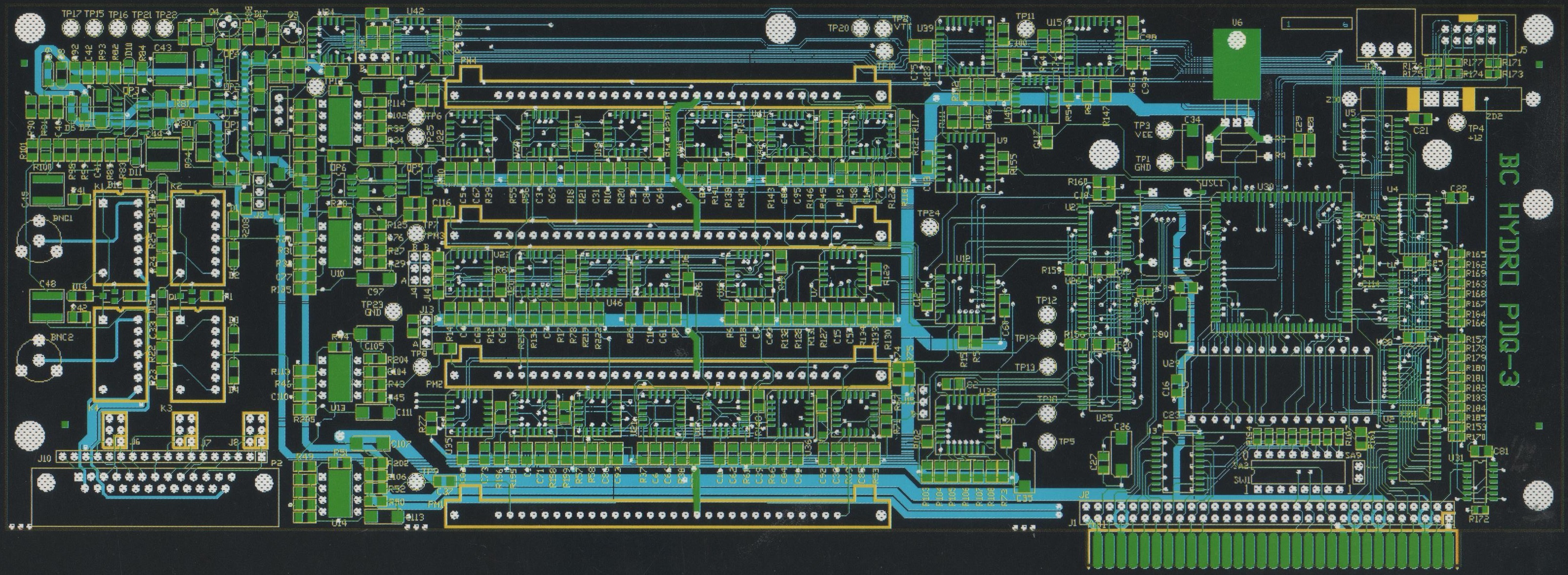 According to my notes I also used Lattice CPLDs in other projects for BC Hydro: an ispLSI 1016 in the AB71-IRIGB module that plugged into an Allen-Bradley 1771 PLC chassis, and an ispLSI 1032 in a support board for their Harmonics Filter.