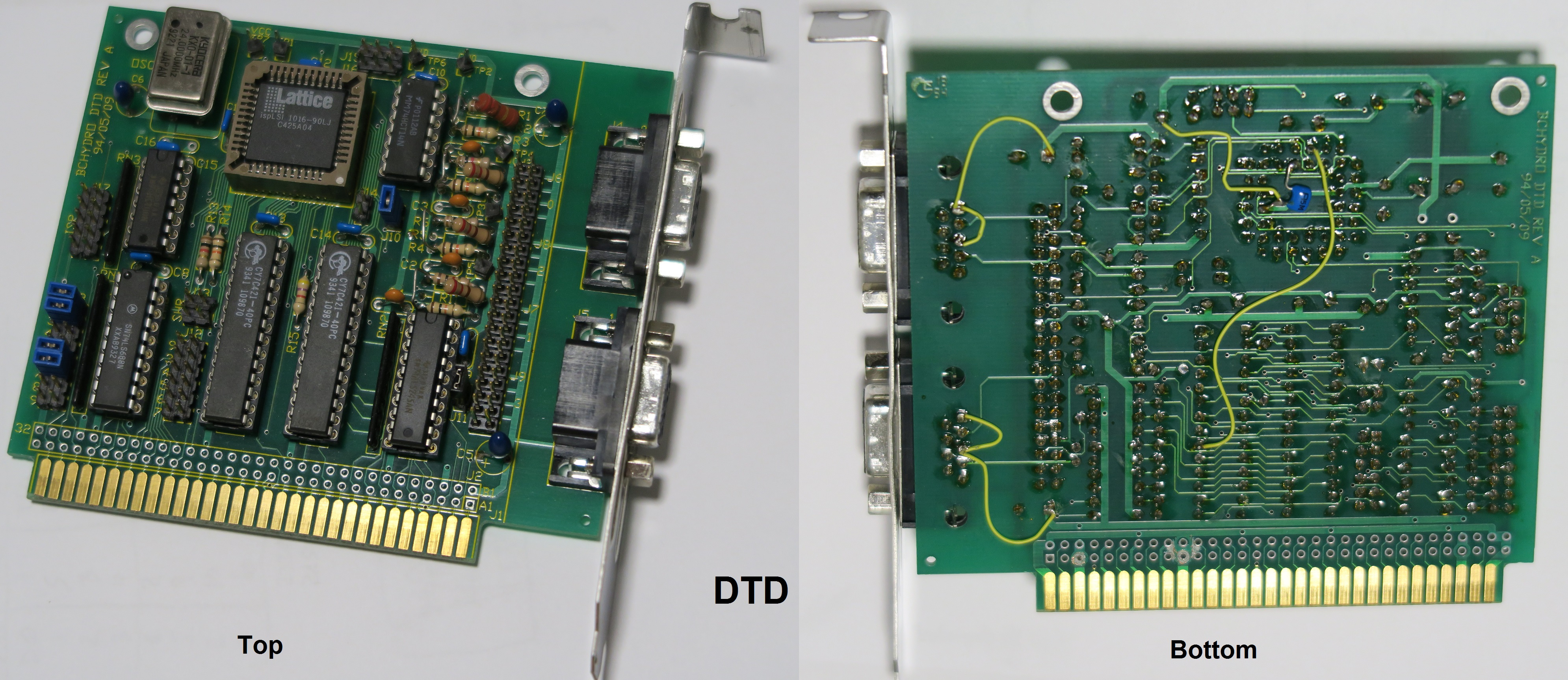 A university engineering student, working for us during his co-op term, designed another board for this system, that used the smaller 44-pin ispLSI 1016 CPLD. Later I re-wrote his logic equations to use synchronous logic instead of asynchronous.